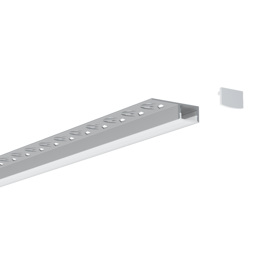 The aluminium profile is anodised with a matte silver finish. Each 3m length is supplied with a opaque diffuser and 2x pairs of end caps.