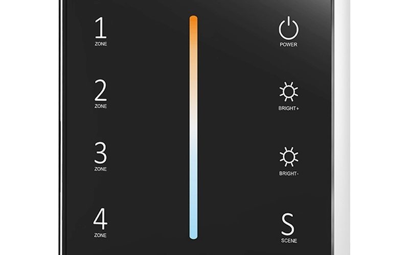 This RF CCT Wireless Wallplate features an ultra sensitive high strength glass touch panel with 4 zone control. The wallplate features both colour temperature adjustment and brightness control touch slider as well as on / off and customisable scene functions. Being wireless allows the wallplate to be mounted virtually anywhere, providing unrivalled flexibility. The wallplate … Continue reading RF CCT Wireless Wallplate (Black) | T22B